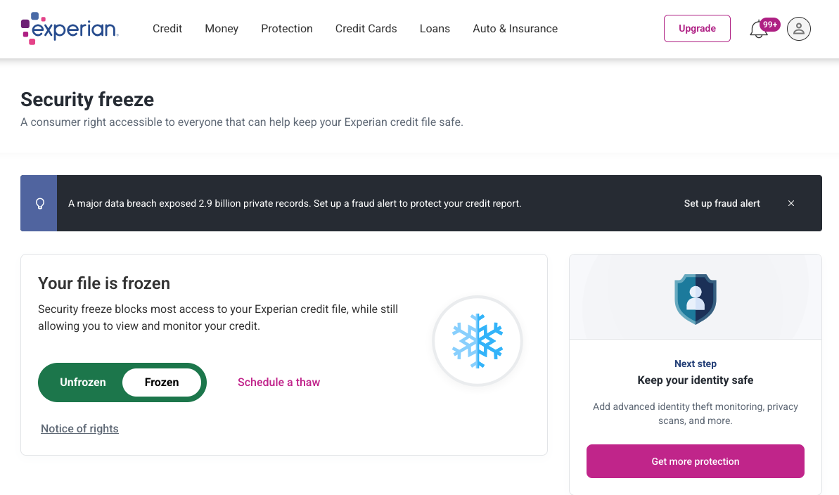 You might want to thaw your credit temporarily. For example, if you know you’ll be applying for a mortgage in the next few weeks, you can set your Experian credit report to be unfrozen between certain dates.